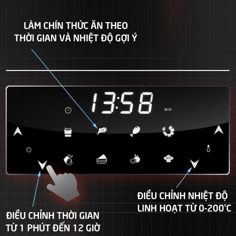 ✔ Công nghệ Rapid Air với 12 cánh quạt lưu động nhiệt mạnh tản nhiệt đều 360 độ trên bề mặt thực phẩm.