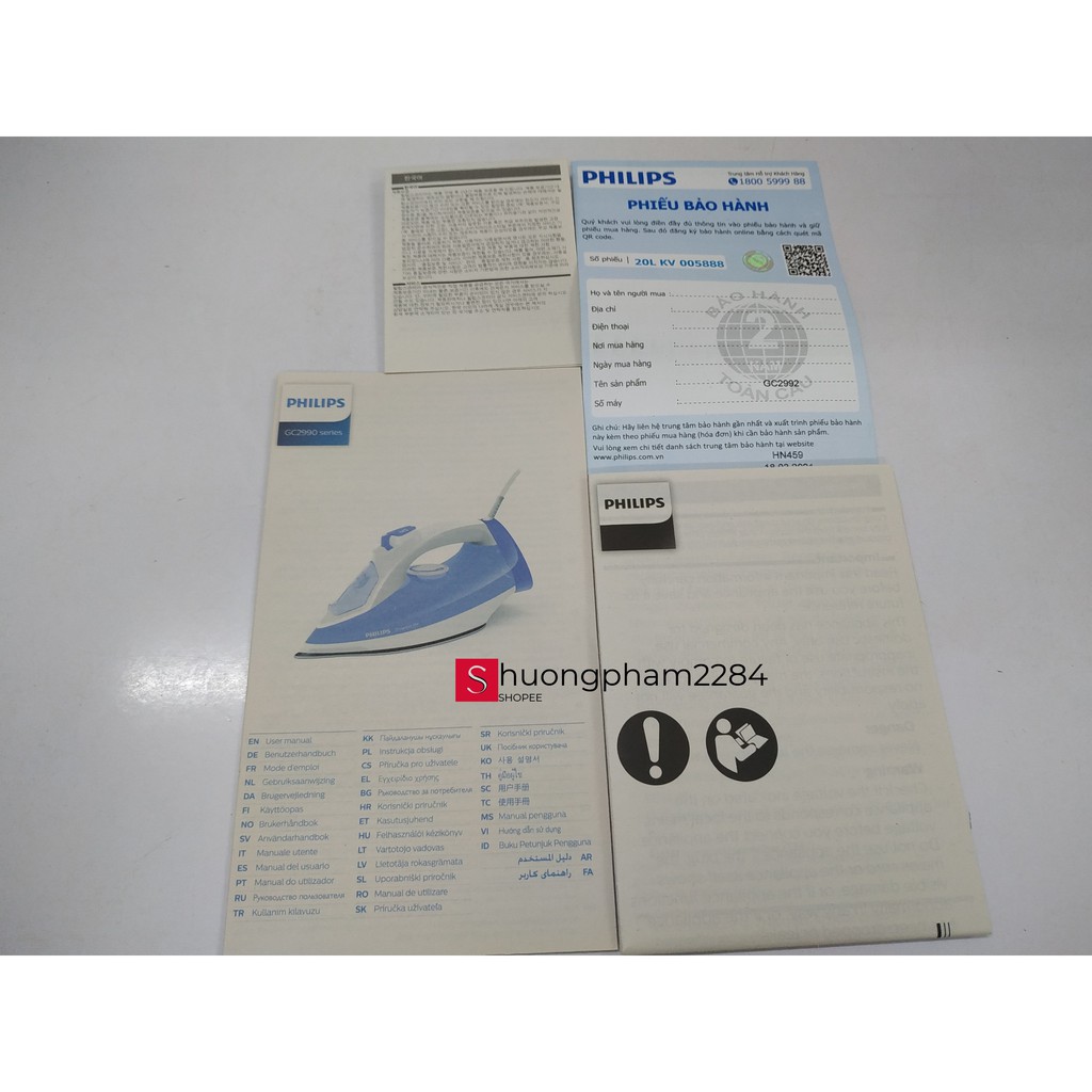 Thiết Bị Điện Gia Dụng > Thiết bị điện gia dụng nhỏ > Bàn là khô & Hơi nước || [Mã 44ELSALE2 giảm 7% đơn 300K] Bàn Ủi Hơi Nước Philips GC2992 (2300W) - Hàng chính hãngCòn hàng