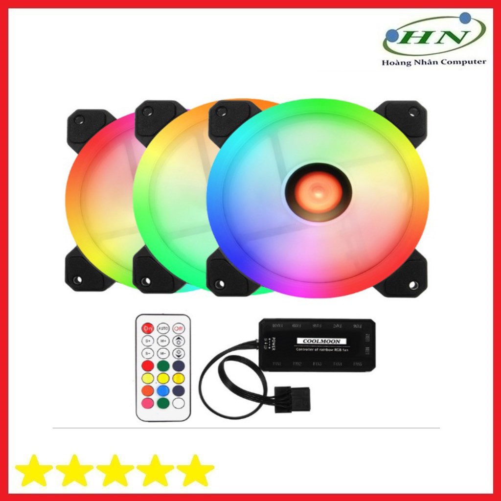Bộ 3 Fan LED RGB COOLMON RGB - HUB -REMOTEBộ quạt tản nhiệt RGB rainbown 16 triệu màu cùng 366 hiệu ứng chuyển màu làm cho bộ máy tính của bạn sẽ lung linh nổi bật và thật phong cách.
