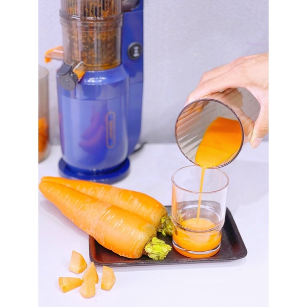 - 50rpm: tốc độ vòng quay của máy. Chậm dãi để ép tối đa từng giọt dinh dưỡng bên trong rau quả