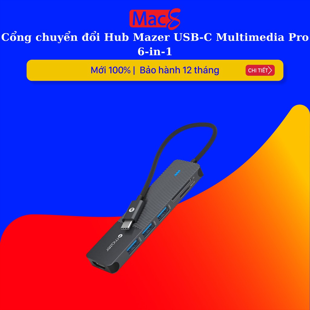 Máy tính & Laptop > Thiết Bị Lưu Trữ > USB & OTG || [Mã 253ELSALE hoàn 7% xu đơn 300K] Cổng chuyển đổi Hub Mazer USB-C Multimedia Pro 6-in-1Còn hàng