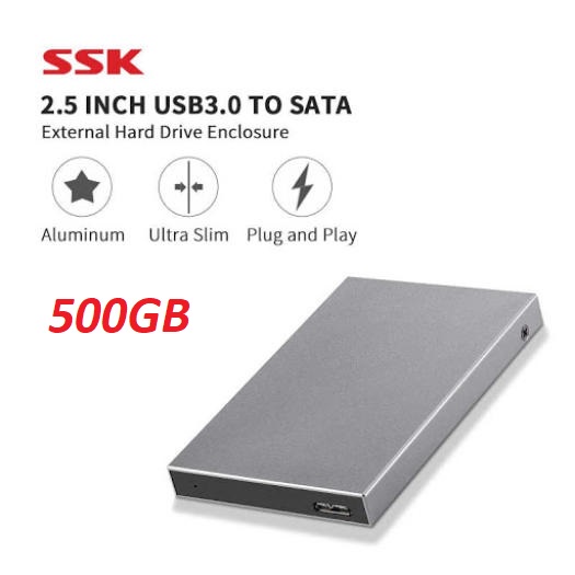 Máy tính & Laptop > Thiết Bị Lưu Trữ > Ổ Cứng Di Động || [Mã 253ELSALE hoàn 7% xu đơn 300K] Ổ Cứng Di Động Silicon / SSK vỏ nhôm 500Gb - USB 3.0 Chống Sock va đậpCòn hàng