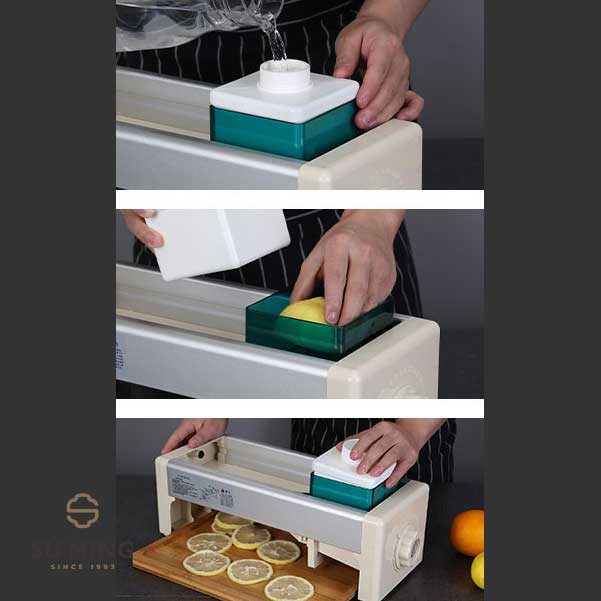 - Chất liệu inox 304 kết hợp nhựa PC cao cấp vừa có độ bền cao và phù hợp vệ sinh an toàn thực phẩm.
