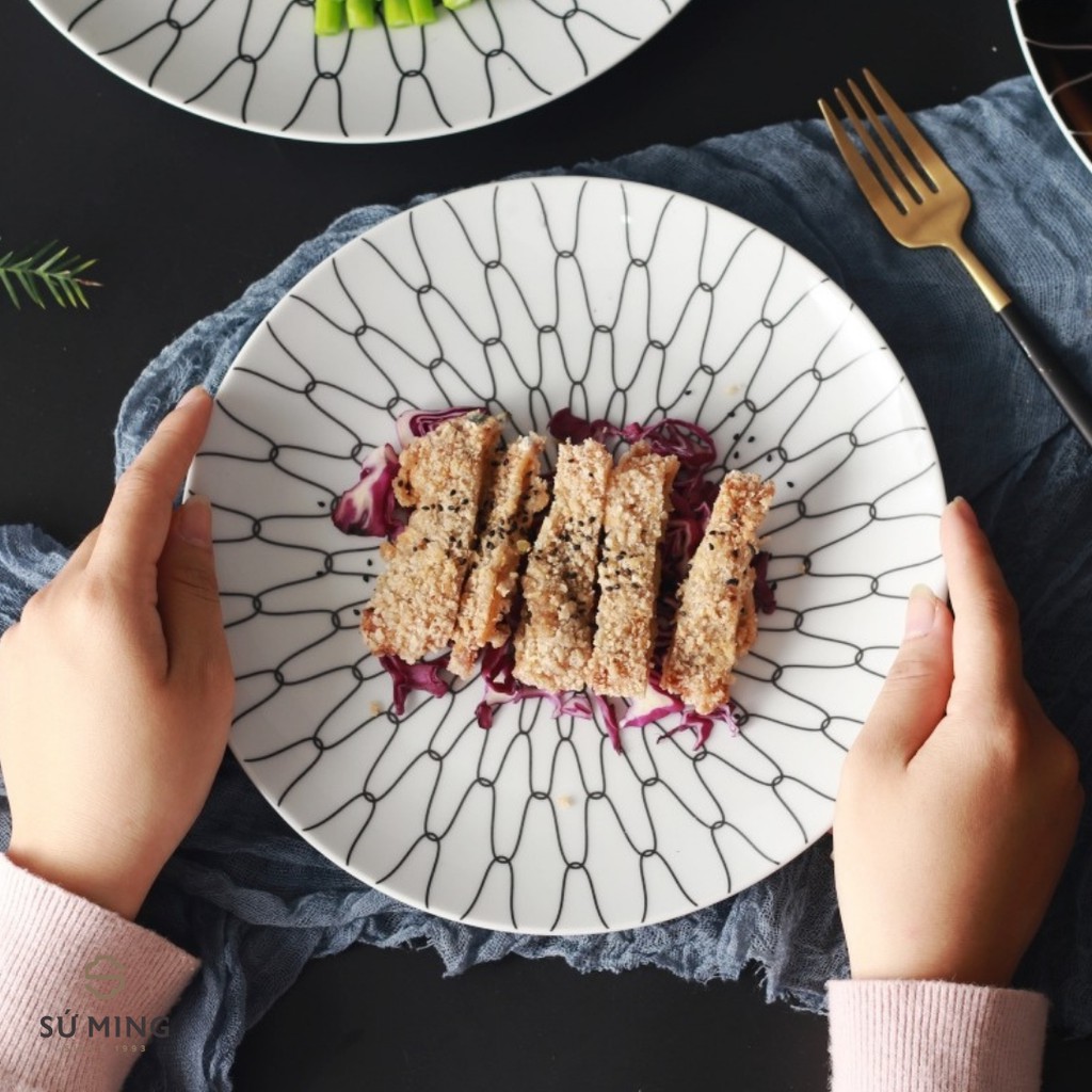Nhà cửa & Đời sống > Bộ đồ bàn ăn > Dĩa || [Mã SKAMSALE03 giảm 10% tối đa 50K đơn 200K] Đĩa Sứ Trang Trí Decor Họa Tiết Sọc Phong Cách Bắc Âu Chất Lượng CaoCòn hàng