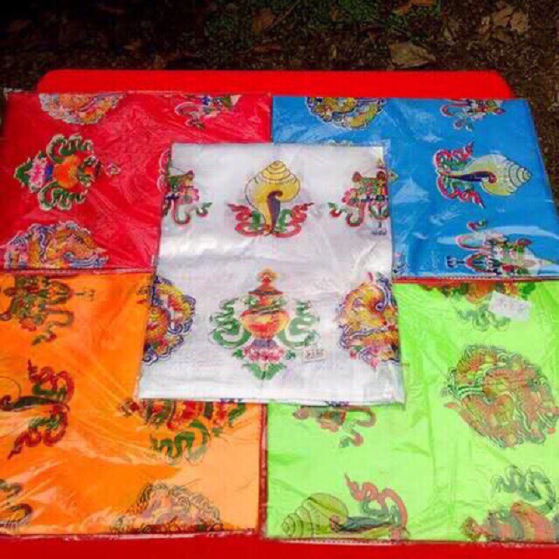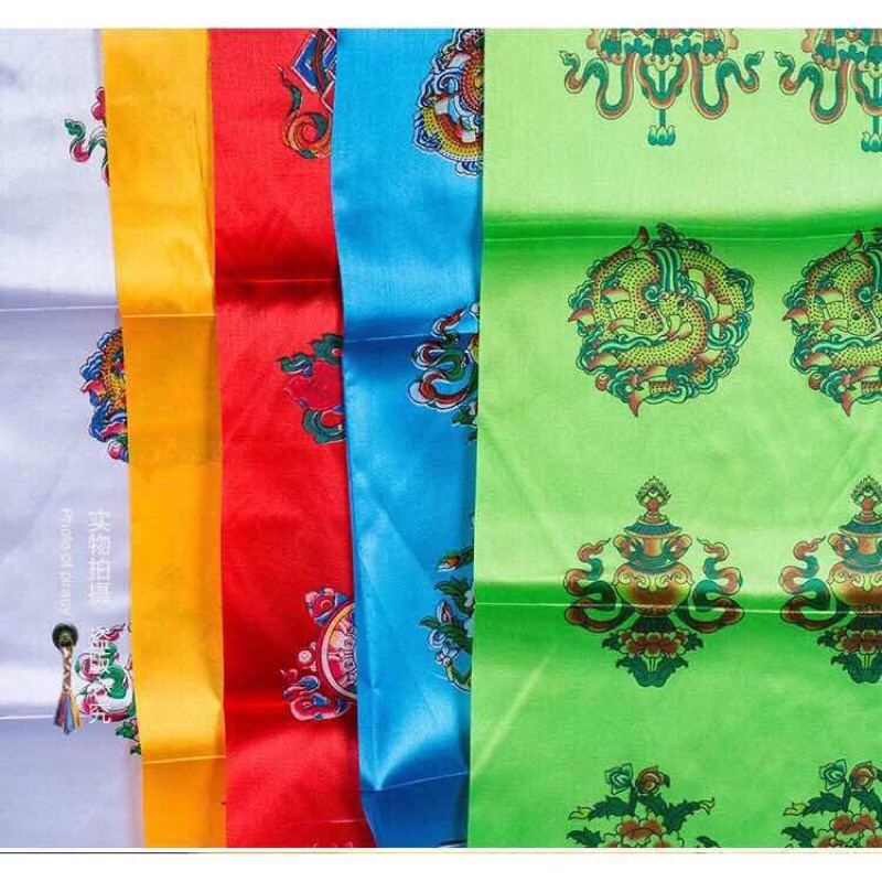 Khăn Khata 8 biểu Tượng Cát Tường in màu ngũ sắc rất đẹp dùng để cúng dường và nhận ban phước từ những vị Rinpoche.