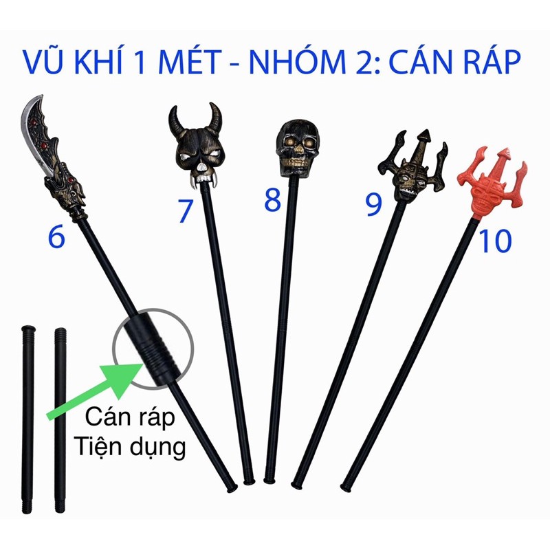 [Mã TOYDEC hoàn 20K xu đơn 50K] Cây lưỡi hái - đinh ba - búa đao - rìu - đầu lâu dài 1 Mét trang trí halloween