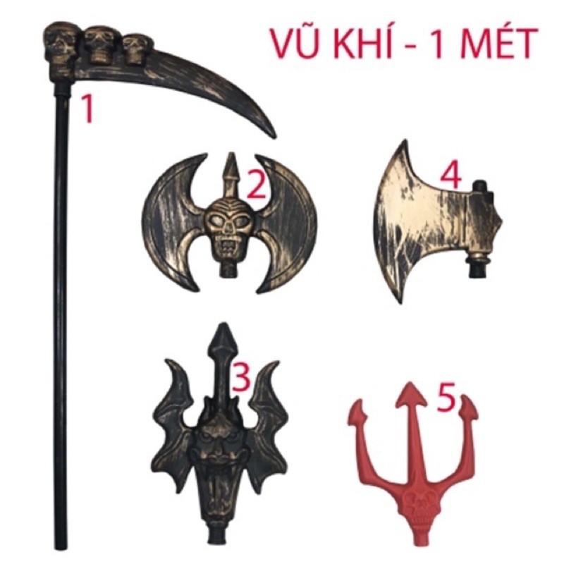 Giới thiệu [Mã TOYDEC hoàn 20K xu đơn 50K] Cây lưỡi hái - đinh ba - búa đao - rìu - đầu lâu dài 1 Mét trang trí halloween