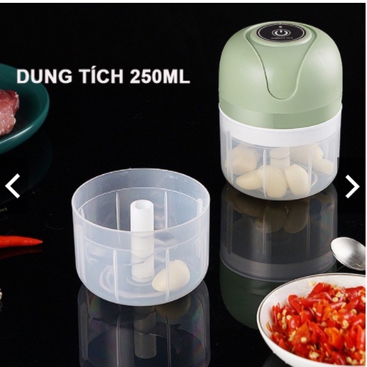 [Màu Trắng - Xanh] Máy Xay Thịt Cầm Tay Mini Sạc Điện 250ml – Máy Xay Tỏi Ớt, Củ Quả Đa Năng, Có Cổng Sạc Usb