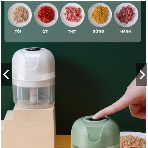 Thiết Bị Điện Gia Dụng > Đồ gia dụng nhà bếp > Máy chế biến thực phẩm & Xay thịt || [Màu Trắng - Xanh] Máy Xay Thịt Cầm Tay Mini Sạc Điện 250ml – Máy Xay Tỏi Ớt, Củ Quả Đa Năng, Có Cổng Sạc UsbCòn hàng