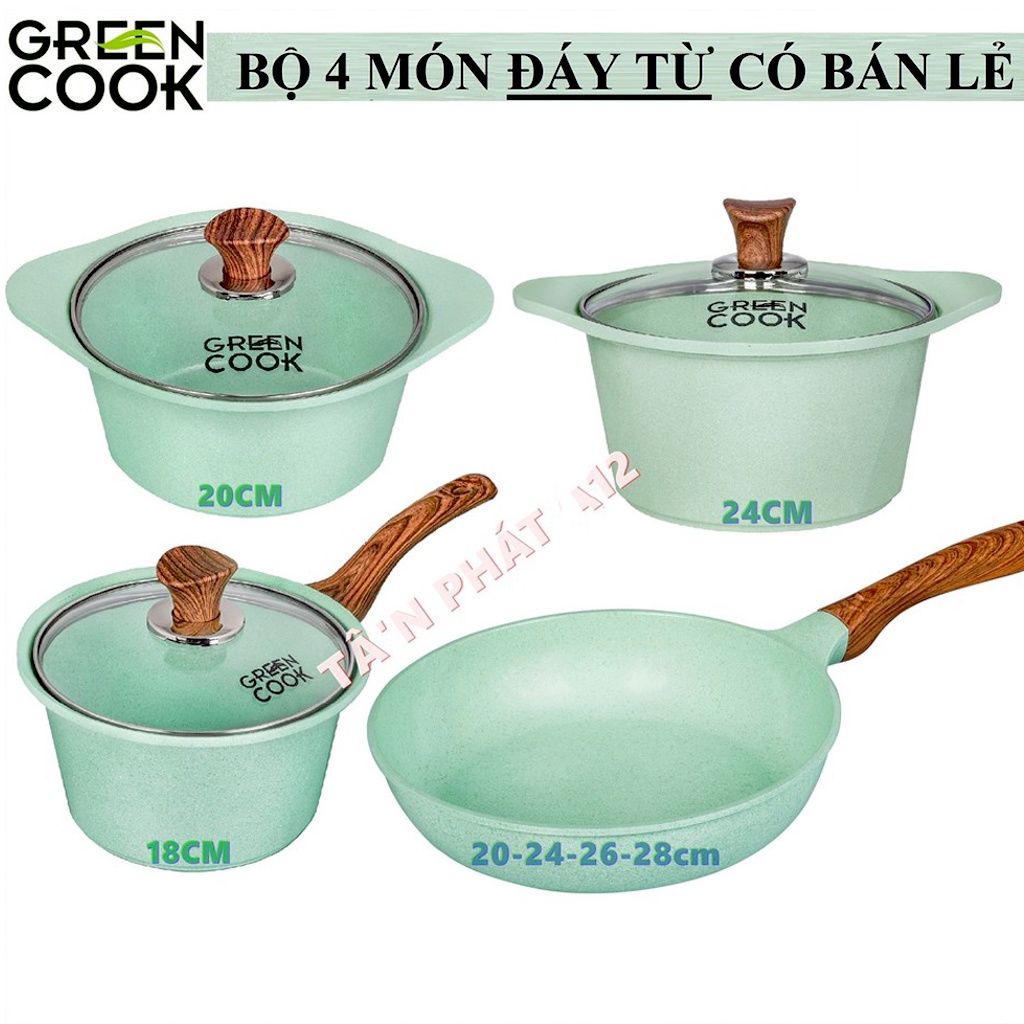 [Mã VTSAGGD giảm 70k đơn 1800k] BỘ NỒI CHẢO ĐÚC MEN ĐÁ greencook (màu xanh ngọc)