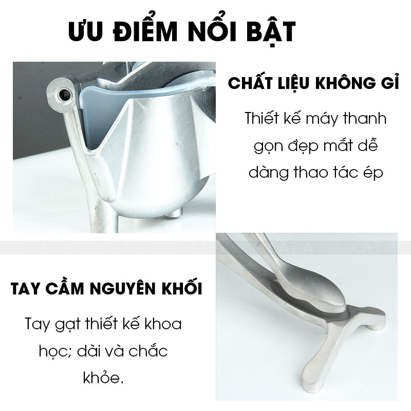- Chất liệu: Lồng ép được làm 100% inox – Thân máy và tay cầm được làm bằng Kim loại,GANG
