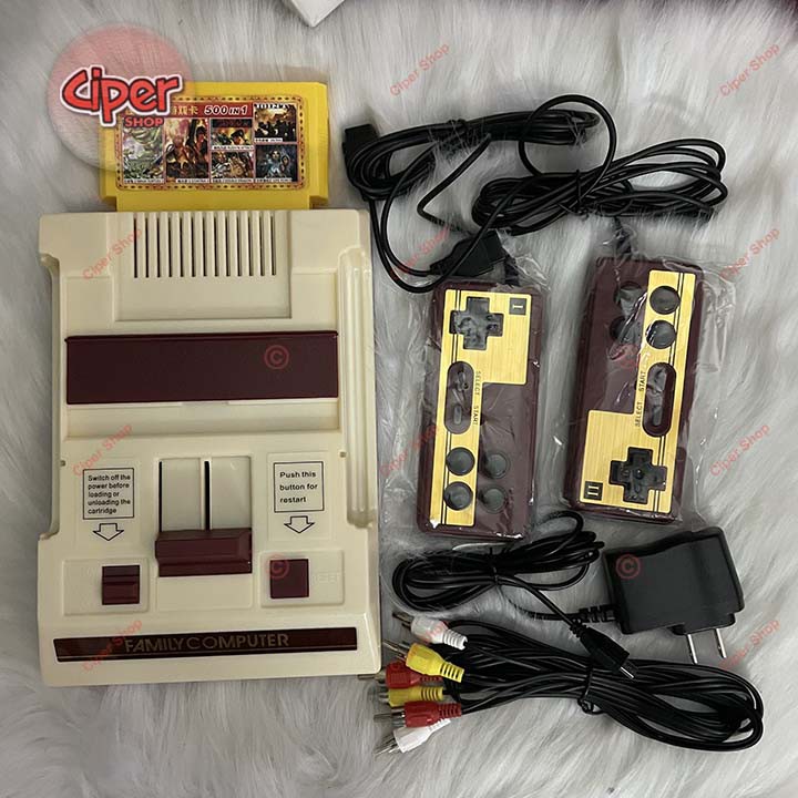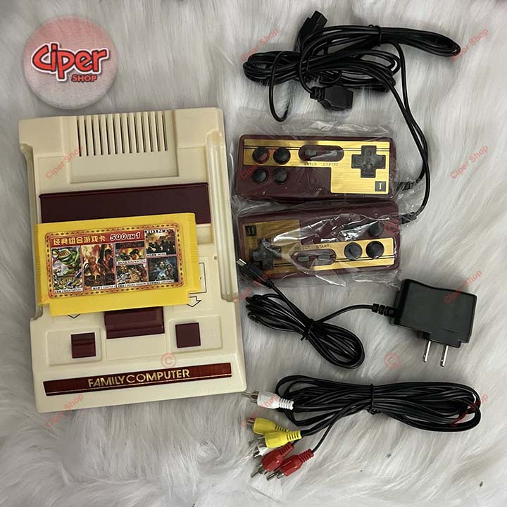 ~ Máy gồm: Thân máy, 2 tay cầm có dây 1,5m, băng 500 in 1, nguồn adapter, dây av.