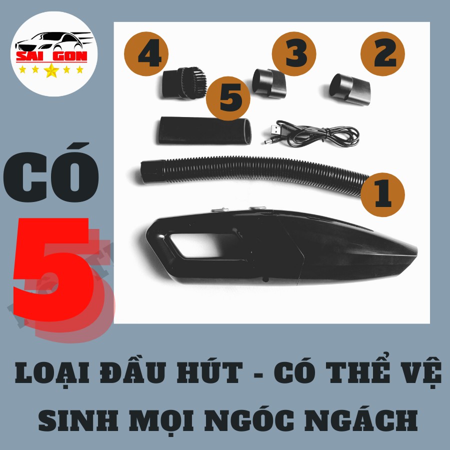 ✔️ Máy hút bụi oto có 5 loại đầu hút khác nhau cho bạn lựa chọn để sử dụng ở những vị trí thích hợp nhất