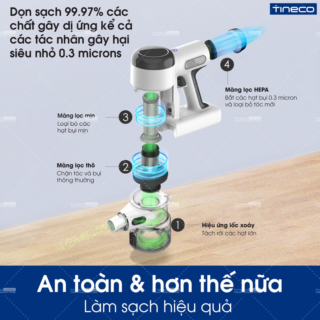 Bộ lọc HEPA 4 giai đoạn hoàn toàn kín loại bỏ 99,97% chất gây dị ứng có kích thước nhỏ như 0,3 micromet