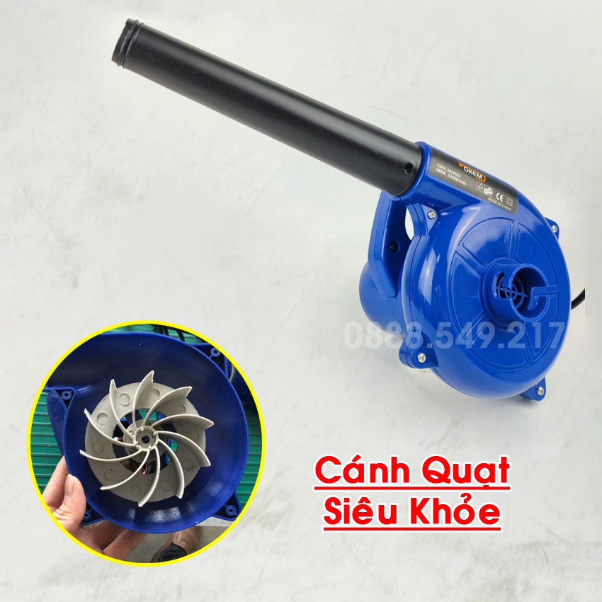 - Đặc tính của máy thổi bụi cầm tay OKEM công suất 6000w là lực thổi rất mạnh có thể thổi đi các bụi bẩn nằm trong các góc khuất, có công tắc điều chỉnh tốc độ tiện dụng nhiều công việc.