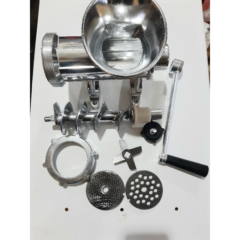 phụ kiện theo cối. 1thân cối ,1bac xoắn, 1xoăn ,1tay quay,1dao,1 sàng li 6, 1 sàng 2 li.