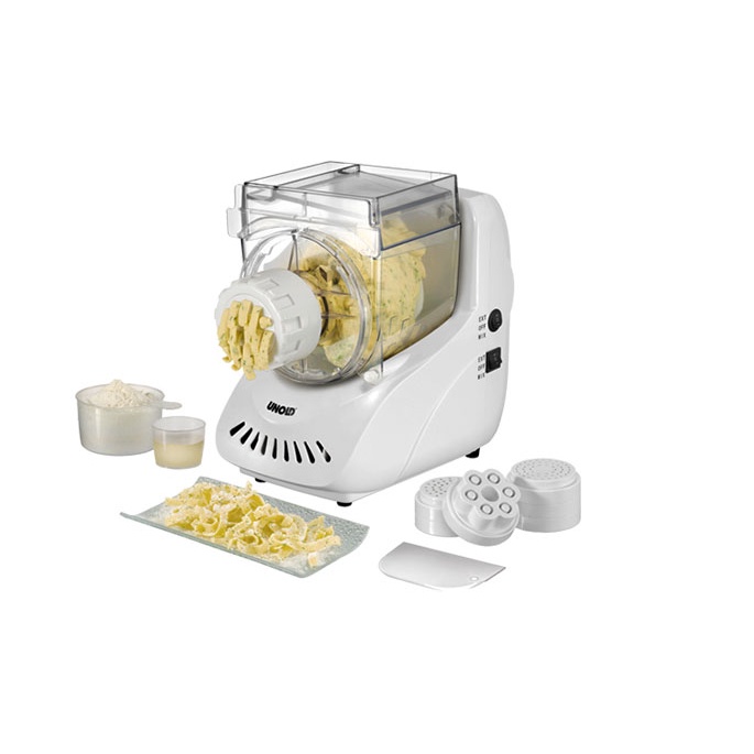 - Máy làm mì Pasta Unold 68801 có thể làm được nhiều loại mì nhờ những đầu ống khác nhau. Máy làm mì Pasta Unold 68801 có thể làm được 500 gram bột mì. Chỉ cần cho các nguyên liệu vào trong máy làm mì Unold 68801 và bật nút, máy sẽ tự động nhồi bột sau đó đẩy thành phẩm ra ngoài theo dạng sợi bạn mong muốn. Chỉ mất vài phút là cả nhà có được món mì tươi đầy hấp dẫn!