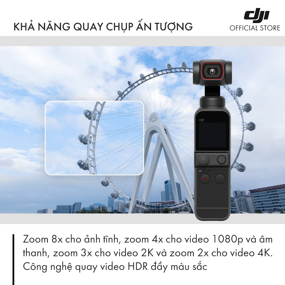 DJI Osmo Pocket 2 là máy quay cầm tay chống rung thế hệ mới nhất của DJI. Thiết bị được nâng cấp cảm biến CMOS 64MP, cho khả năng quay phim 4K kèm khả năng Zoom đến 8x, âm thanh cũng được cải tiến rõ rệt nhờ công nghệ Matrix Stereo giúp hiệu quả quay phim đạt mức tối đa, phù hợp với mọi đối tượng, đặc biệt là Vlogger. Nếu bạn đang tìm kiếm máy quay làm youtube, máy quay vlog cầm tay thì Osmo Pocket 2 chính là sự lựa chọn lý tưởng.🔥Ưu đãi khi mua máy quay cầm tay chống rung tại DJI Official Store