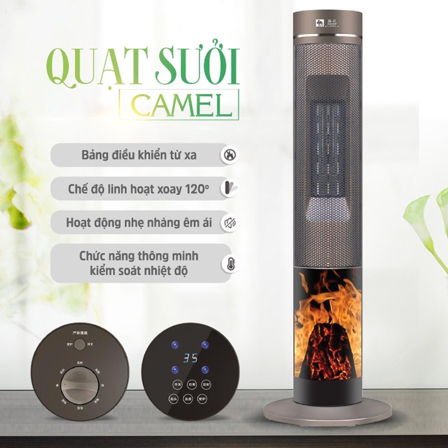 Máy sưởi chính hãng, Quạt sưởi gốm cao cấp CAMEL - Làm ấm nhanh, tỏa nhiệt đều, xoay đảo chiều 120 độ🔥 CÓ ĐIỀU KHIỂN TỪ XA & MÀN HÌNH CẢM ỨNG