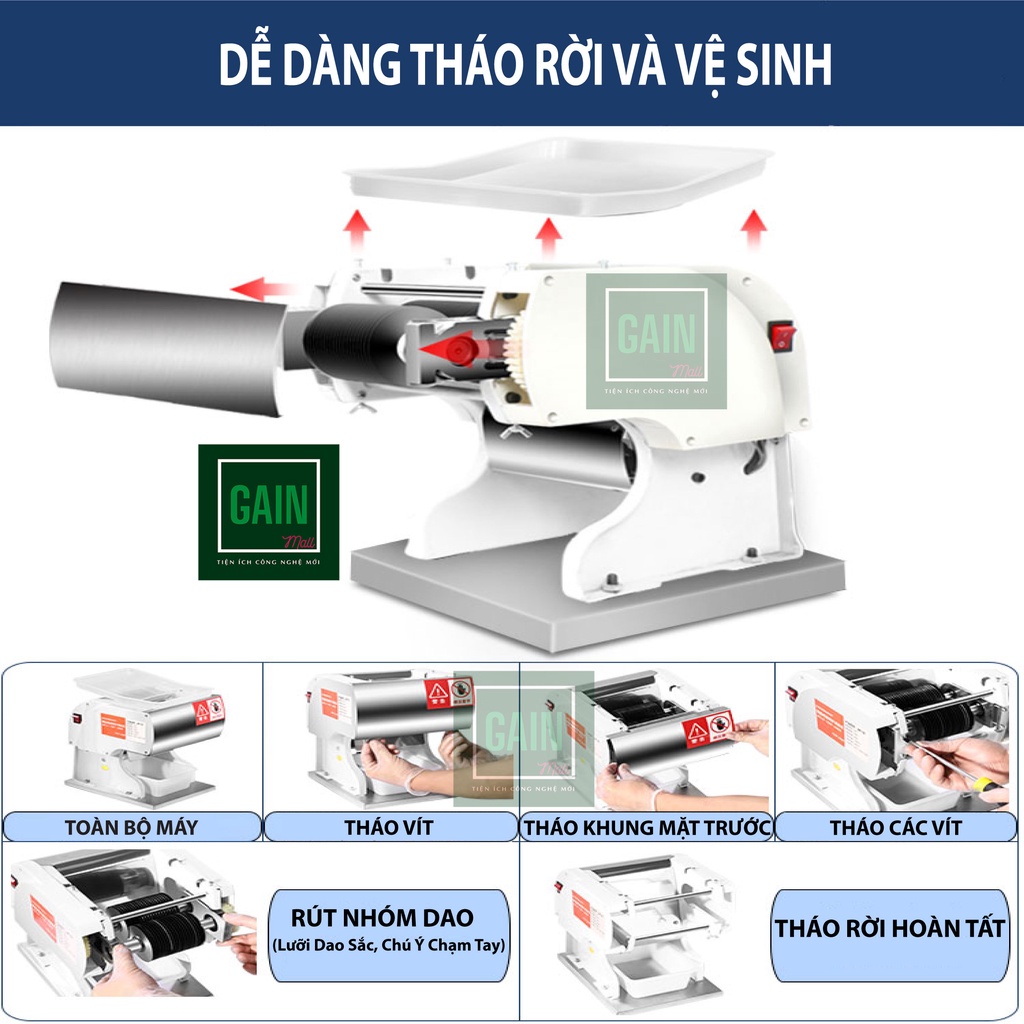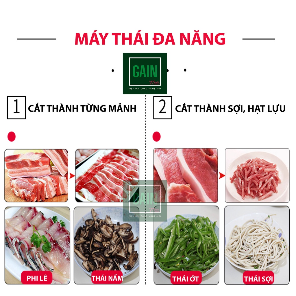Máy Thái Thịt Tươi Sống Thịt Chín Đa Năng, Công Suất 550W, Cắt Dày Mỏng, Sợi, Hạt Lựu, BH 18 Tháng Đổi Lỗi 6 ThángNHÀ NHẬP KHẨU GAIN Mall