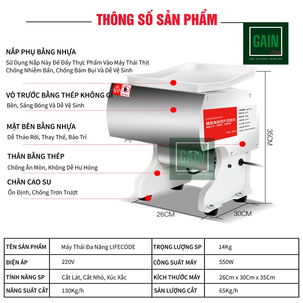 Thông số kỹ thuật máy thái thịt đa năng LIFECODE