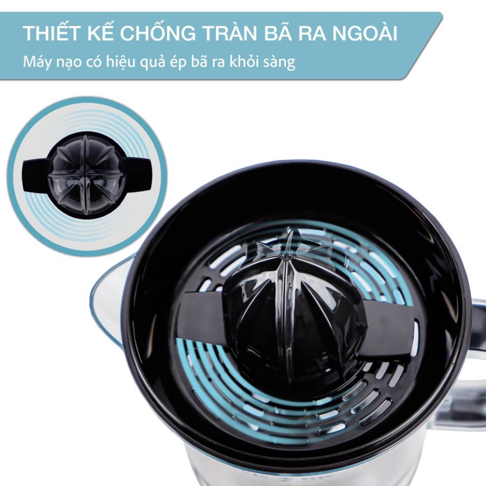 Đặc biệt, sản phẩm trang bị bình đựng trong suốt giúp 3bạn quan sát được lượng ép bên trong. Nắp đậy bảo vệ bên ngoài và nắp đậy đầu vắt bên trong giúp bảo vệ kín đáo, ngăn ngừa bụi bẩn, vi khuẩn xâm nhập hiệu quả. Quai cầm dày chắc kết hợp cùng miệng rót trên bình đựng giúp bạn thực hiện các thao tác cầm nắm, rót nước ép dễ dàng.