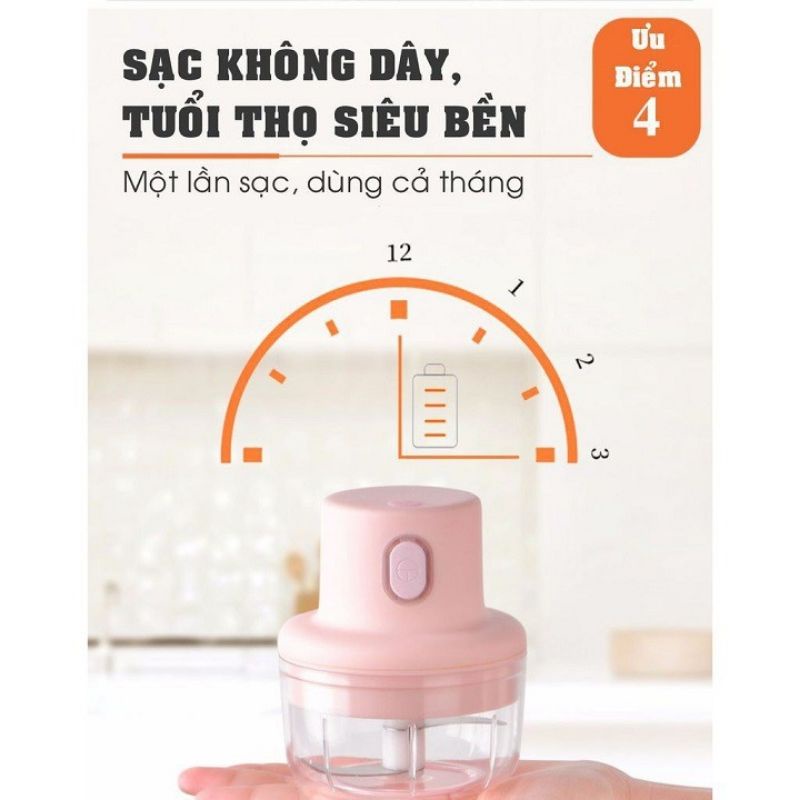 MÁY XAY ĐA NĂNG SẠC ĐIỆN THÔNG MINH 250ML. XAY TỎI ỚT VÀ RAU CỦ QUẢ