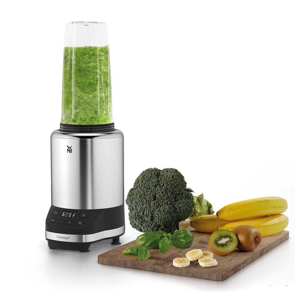 -Trong một lớp của riêng mình. Máy trộn và xay sinh tố hiệu suất cao với công suất 1.200 watt. Với sáu cài đặt tốc độ và màn hình LC kỹ thuật số. Máy xay sinh tố WMF KULT Pro có thể khuấy và xay nhuyễn mọi thứ chỉ bằng một nút bấm. Ba chương trình tự động tạo nên lên sinh tố, có thể nghiền đá xay và nhiều hơn nữa. Đặc biệt thiết thực cho “đi”: -Hai bình chứa có nắp chống rò rỉ thể vận chuyển hoặc mang đi du lịch, đá bóng, đi chơi.