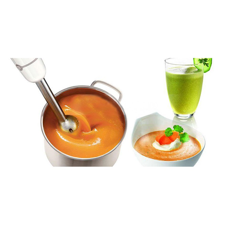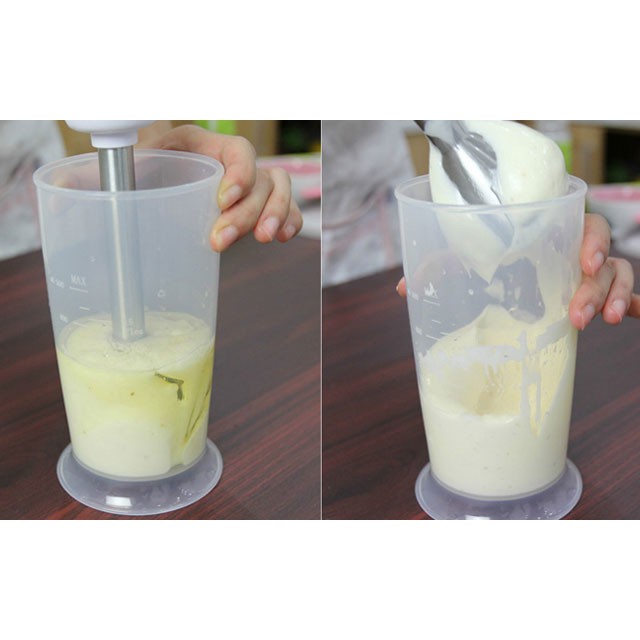 >> Cây xay có cán bằng thép không gỉ có thể xay được cả cháo nóng, súp trong nồi rất tiện lợi