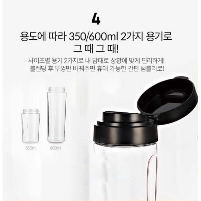 - Máy xay mini Hurom gồm có 2 cốc xay 300ml và 600ml, sau khi xay tháo nắp lưỡi xay ra và đậy nắp đi kèm vào là có ngay 1 cốc uống sinh tố đem theo đi học, đi làm