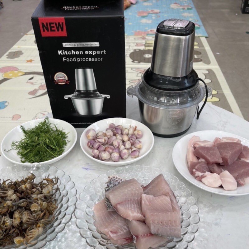 Máy Xay Thịt Cối Inox 4 Lưỡi Đa Năng, máy xay cầm tayCông suất 300w xay thịt, xay tỏi ới, xay rau củ quả