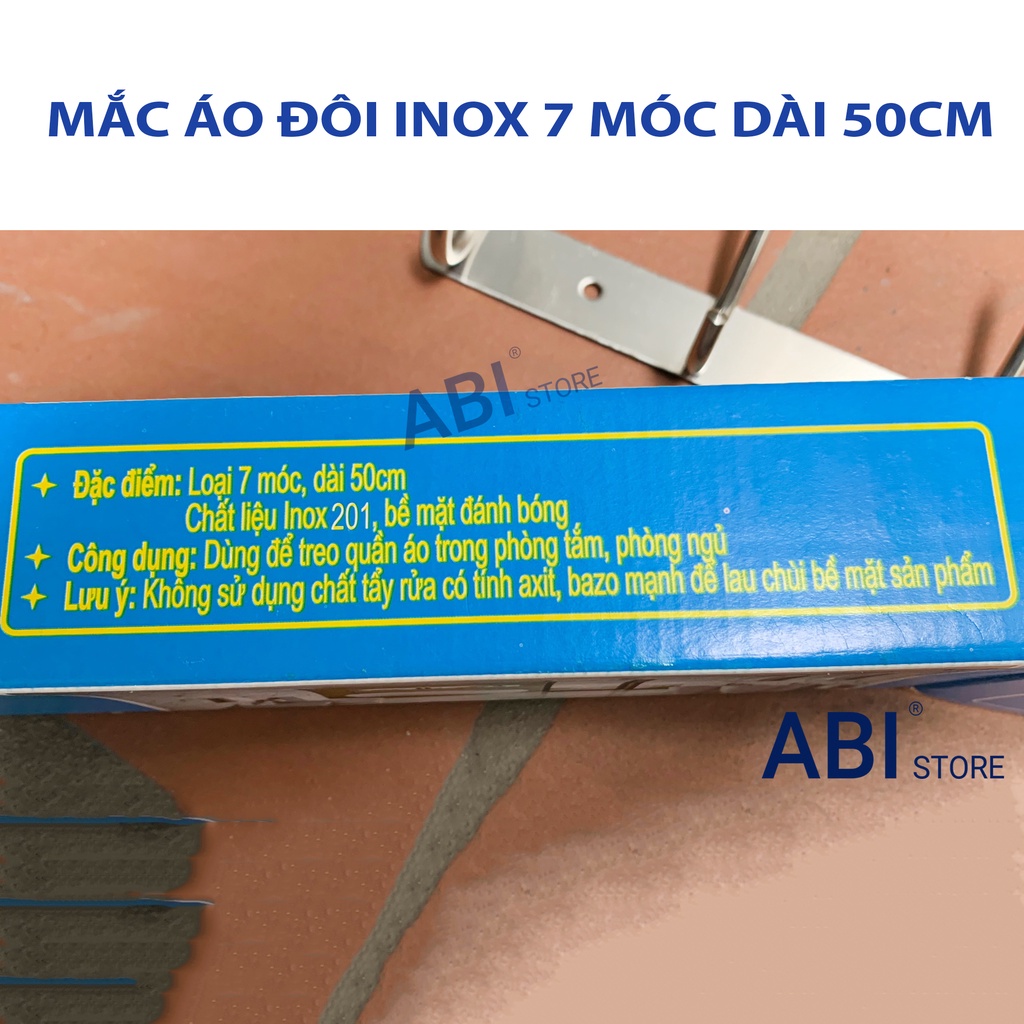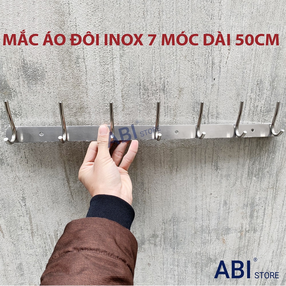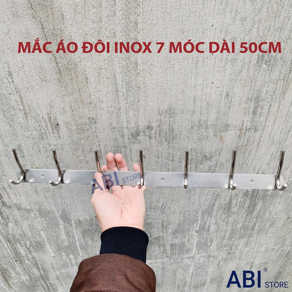 Mắc áo nhà tắm đôi 7 móc, móc áo phòng ngủ Mạnh Hà hàng đẹp giá rẻ dài 50cmChất liệu inox 201