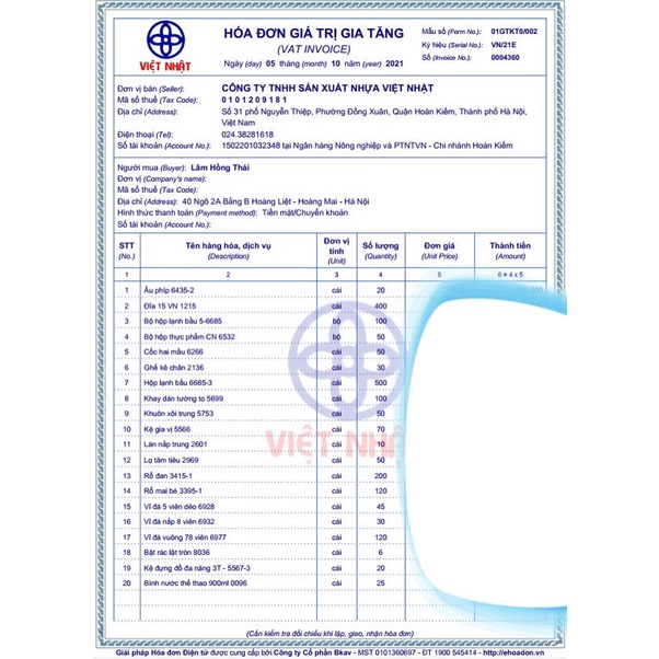 Xuất xứ: Công ty TNHH sản xuất nhựa Việt Nhật