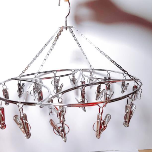 Bộ móc inox xinh xắn, bạn có thể phơi khăn, phơi tất, khẩu trang,... dễ dàng mà không sợ bị gió thổi bay.