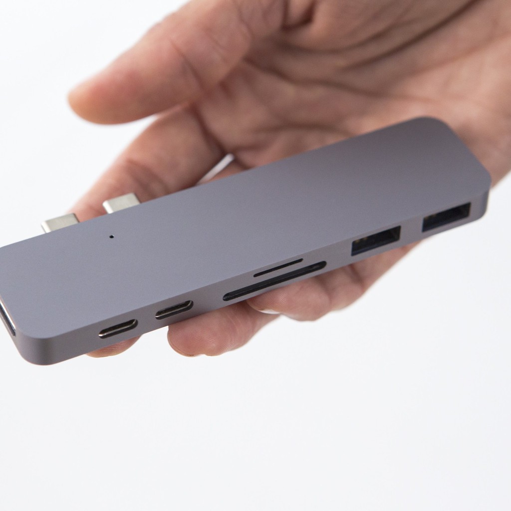Duo 7-IN-2 có băng thông cực lớn cho 2 cổng USB-C còn gọi là Thunderbolt 3: 40Gbps/100W + 5Gbps/60W, Phiên bản DUO hỗ trợ xuất từ 2 cổng USB-C của Macbook Pro/Air ra 7 cổng: