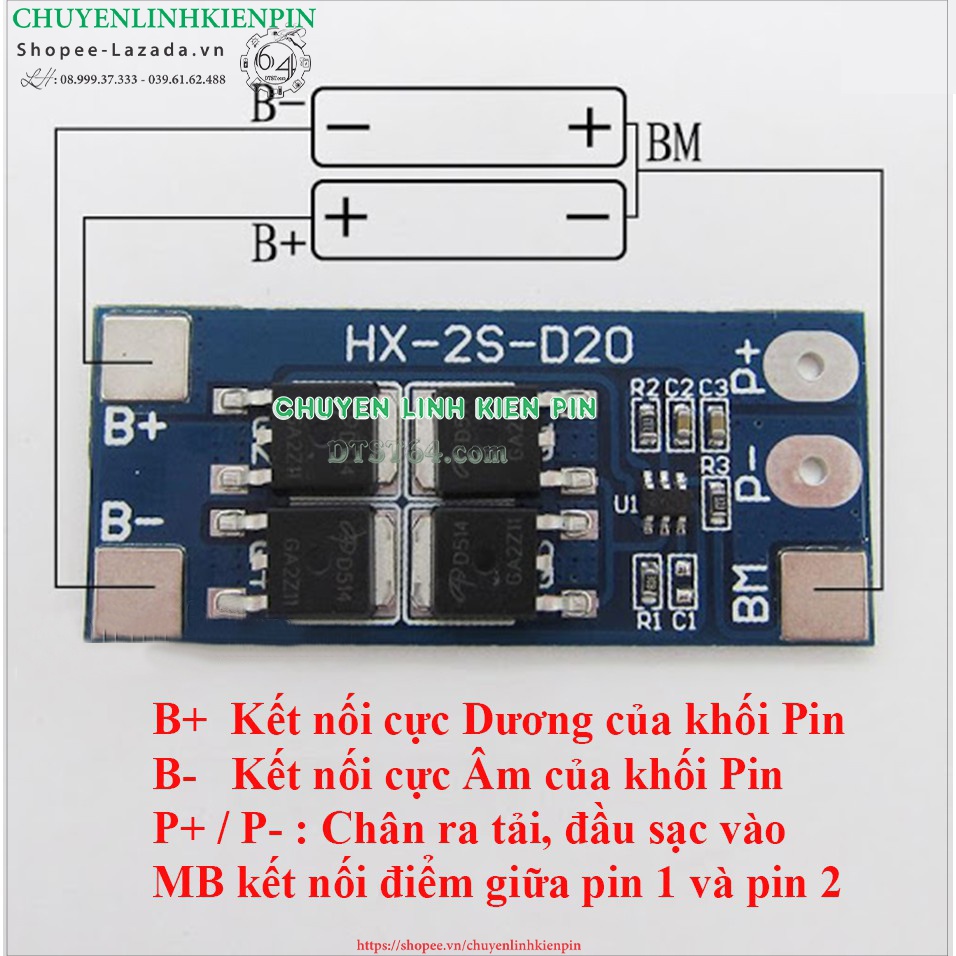 Thiết Bị Điện Gia Dụng > Pin || Mạch 2S 15A sạc và bảo vệ cell Li-ion, dùng cho (pack) pin Li-ion 4.8V-7.4V ( BL64_56 )Còn hàng