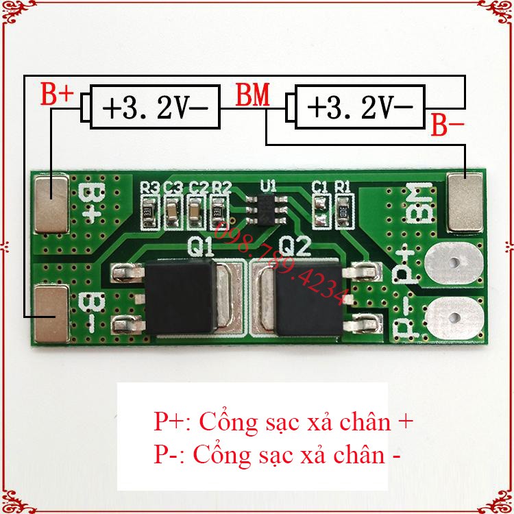 - Chức năng: Sạc và bảo vệ cell LifePo4, dùng trong pin lifepo4 có mức điện thế từ 5v và 7.3V.