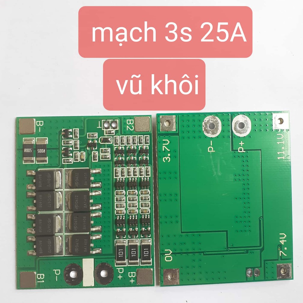 Mạch bảo vệ cell pin Li-ion 3S 12v6 25A max, dùng được cho pin máy khoan 9.6v 10.8v 11.1v và 12v máy công suất nhỏThông số mạch: