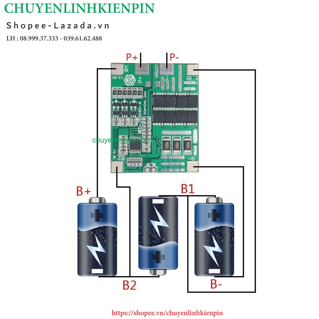- Hàn theo thứ tự từ B- (0V), B1 ( 3.7V/4.2V), B2 (7.4V/8.4V) và B+ (11.1V/12.6V).