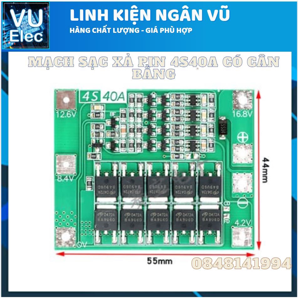 MẠCH 4S40A chuyên sạc xả và bảo vệ pin .16.8
