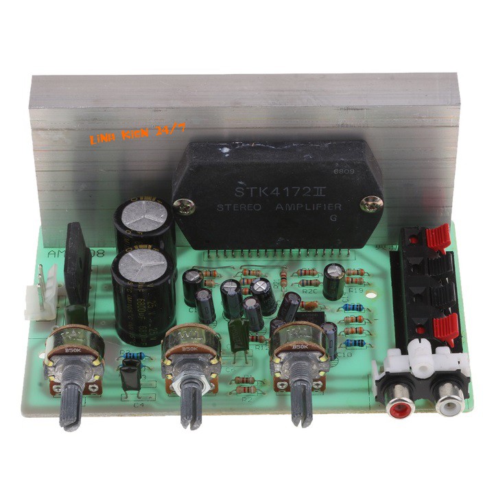 Tính năng sản phẩm:Mạch khuếch đại âm thanh (stereo amplifier) AM0408 sử dụng IC STK4152II nguồn đầu vào 15V-18V AC với công suất cao lên đến 100W (50Wx2 kênh) với các đặc tính như sau: