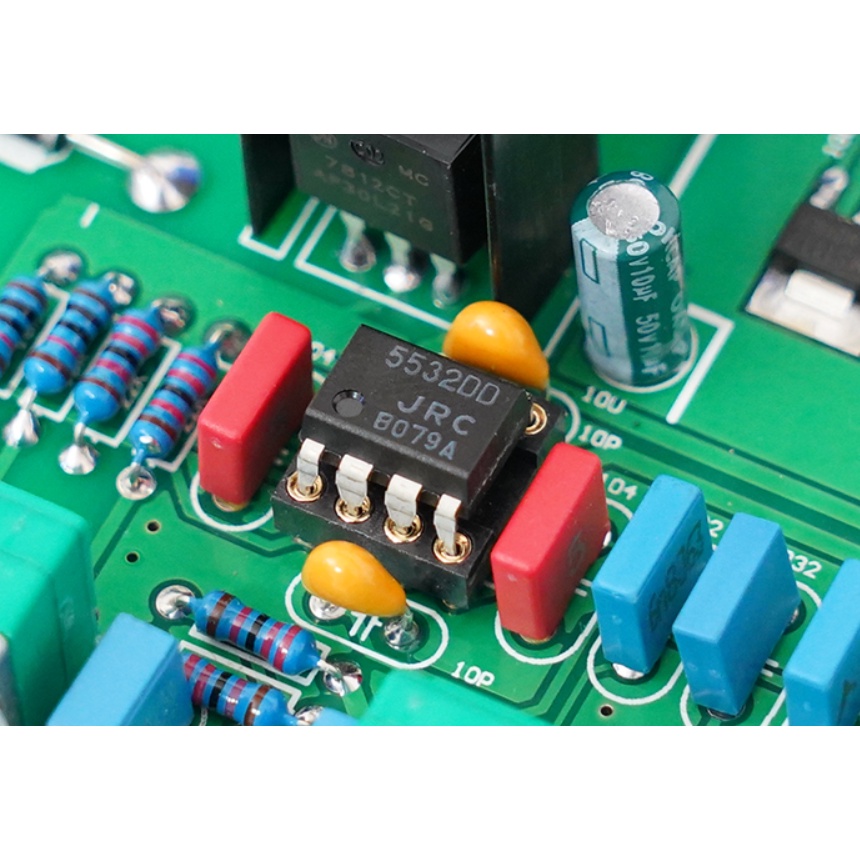 Mạch sử dụng các IC chính hãng chất lượng tốt như BD139 BD140 CLASS A, TL431, điện trở chân đồng cao cấp.. đặc biệt trong mạch sử dụng OPAM 5532DD chính hãng JRC cùng các tụ điện chính hãng ELNA, RUBYCON, WIMA, ERO VISHAY,.. cho chất âm tuyệt vời như mong đợiCó 4 voulume chỉnh ÂM LƯỢNG, BASS, MID, TREBLE.