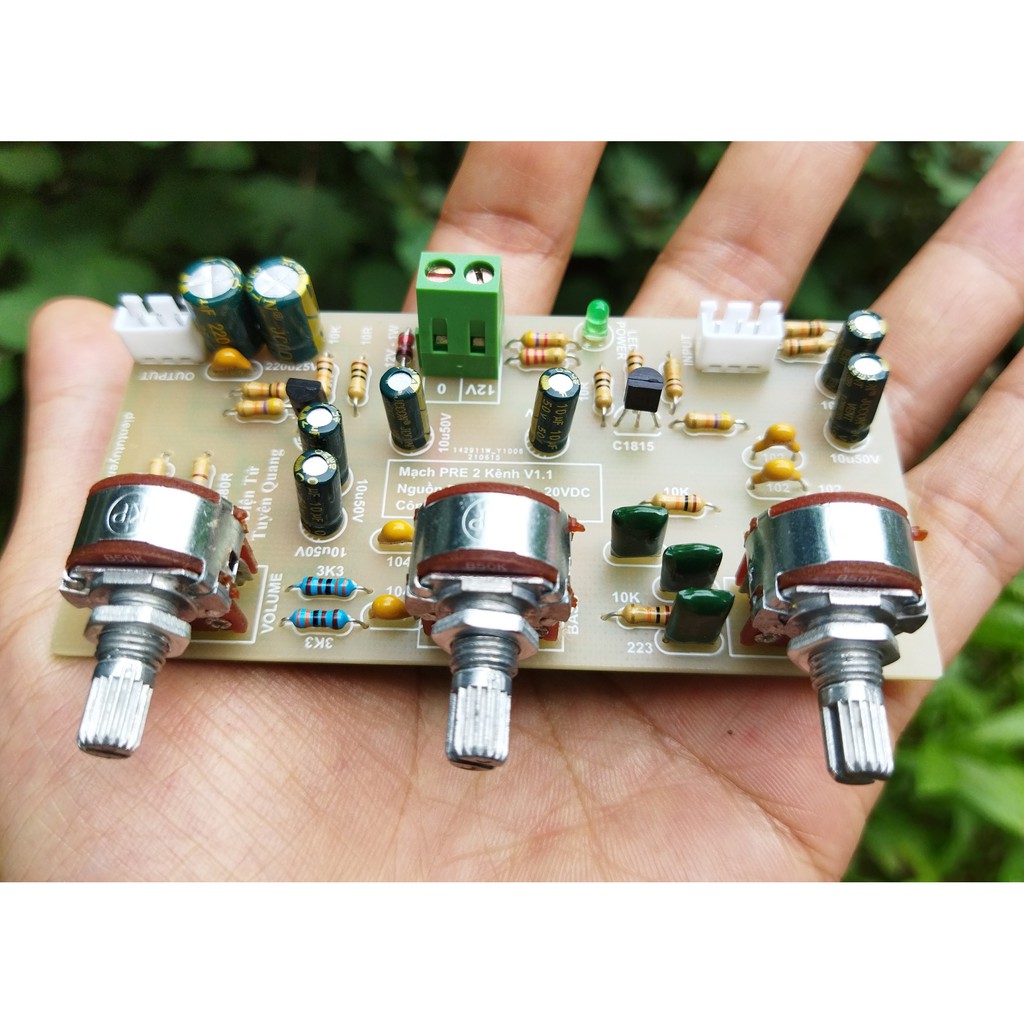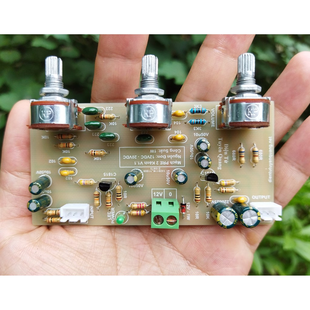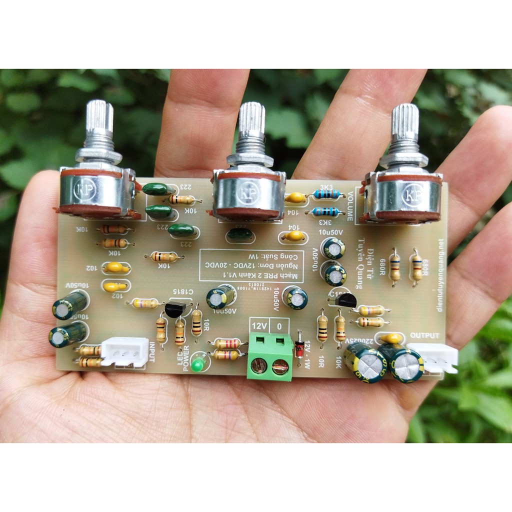 Mạch âm sắc 2 kênh V1 New bản fixMạch âm sắc V1 này là bản fix của mẫu trước, kích thước và điện áp vẫn như nhau tuy nhiên có hệ số khuếch đại lớn 2,5 lần bản cũ và chất âm rất tốt, bass mạnh lực hơn, treble sáng hơn... nghe nhạc trữ tình âm thanh rất tốt so với mạch sử dụng nguồn đơn giá tương tự.