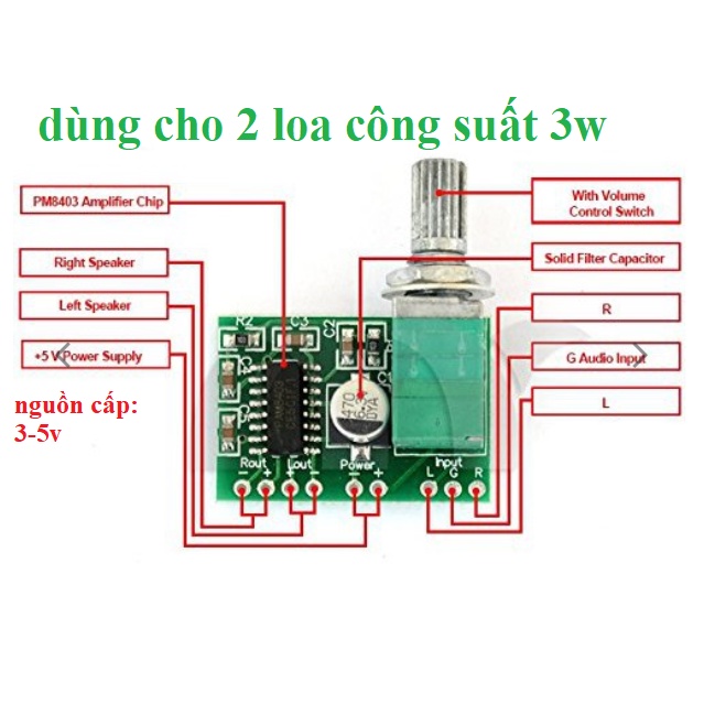 - Mạch 1 loa 3w trong lựa chọn là mạch dùng cho 1 loa, công suất 3w