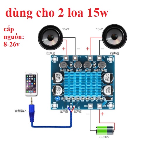 - Mạch 2 loa 15w trong lựa chọn là mạch dùng cho 2 loa công suất 15w