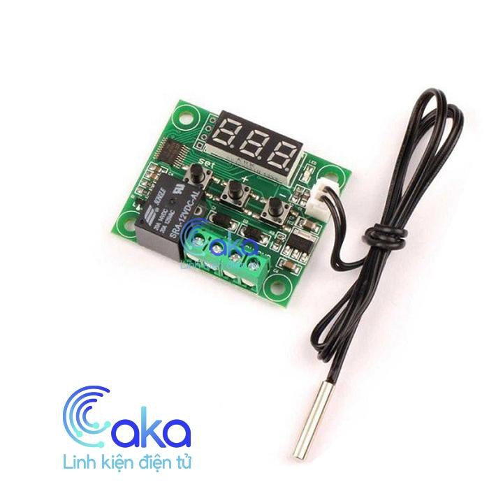 Mạch điều khiển đóng ngắt nhiệt độ W1209 là module cảm biến nhiệt độ có hiển thị LED 7 đoạn. Đặc biệt ta có thể cài đặt mức nhiệt độ (1 mức) hoặc khoảng nhiệt độ để kích relay. Nhờ tính năng hữu dụng này mà người dùng có thể dễ dàng sáng tạo nhiều ứng dụng thú vị như: máy ấp trứng, cảnh báo nhiệt độ, làm mát tự động….v.v.Thông số kỹ thuật : Mach nhiệt độ W1209