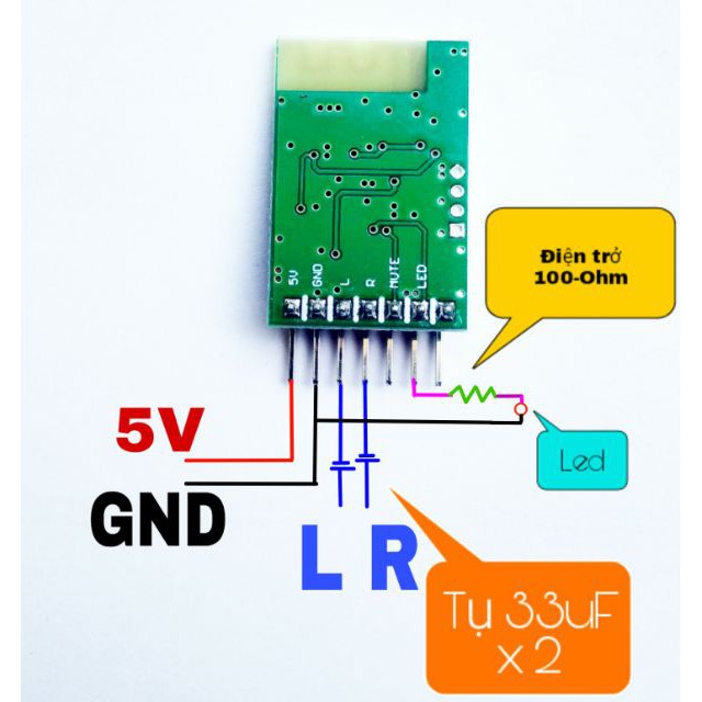 Lưu ý: Nên hàn các chân kết nối trực tiếp với nguồn và các đầu ra để đảm bảo tín hiệu ổn định nhất.