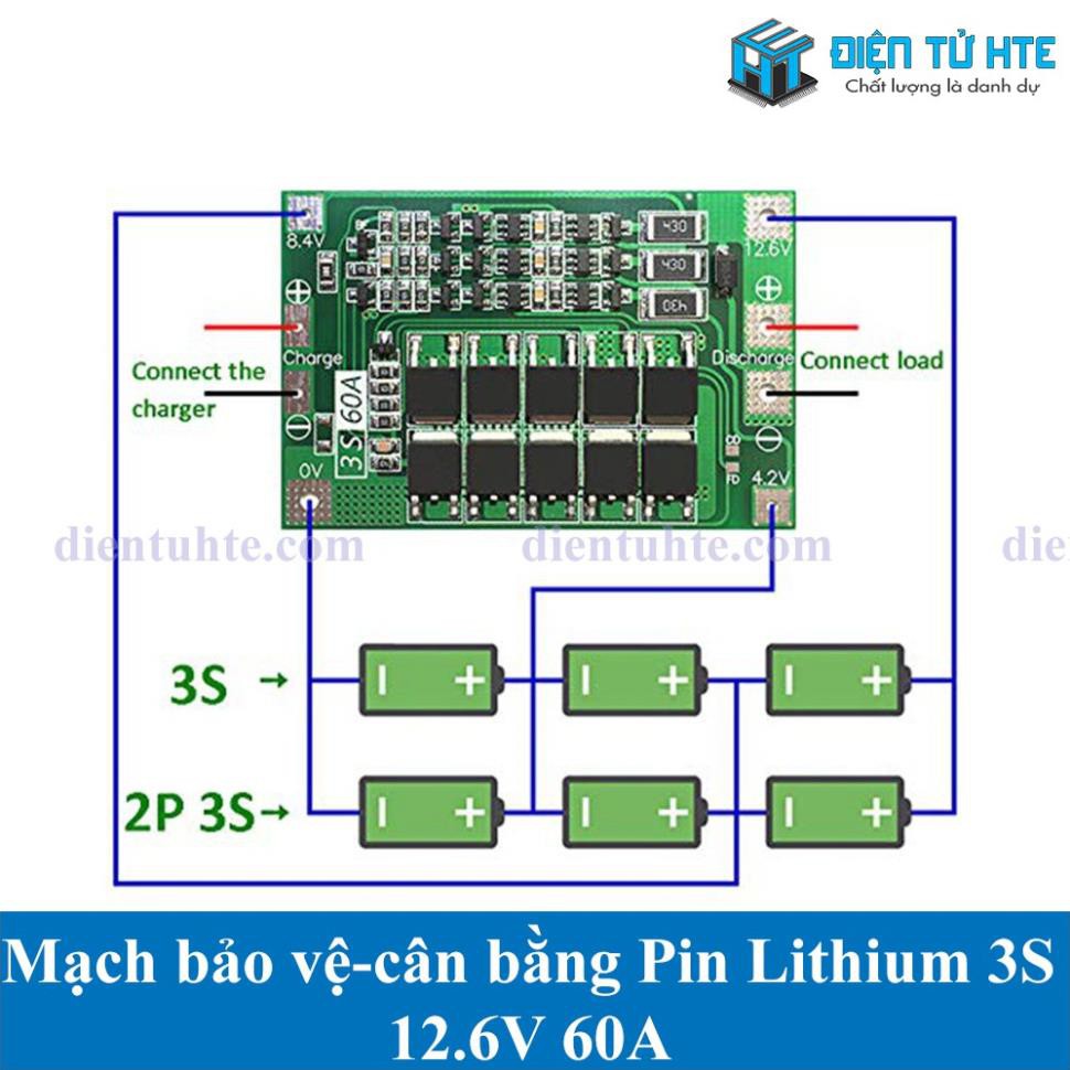 Giới thiệu Mạch bảo vệ - cân bằng Pin Lithium 3S 11.1V 12.6V dòng tải 60A [HTE Quy Nhơn CN2]