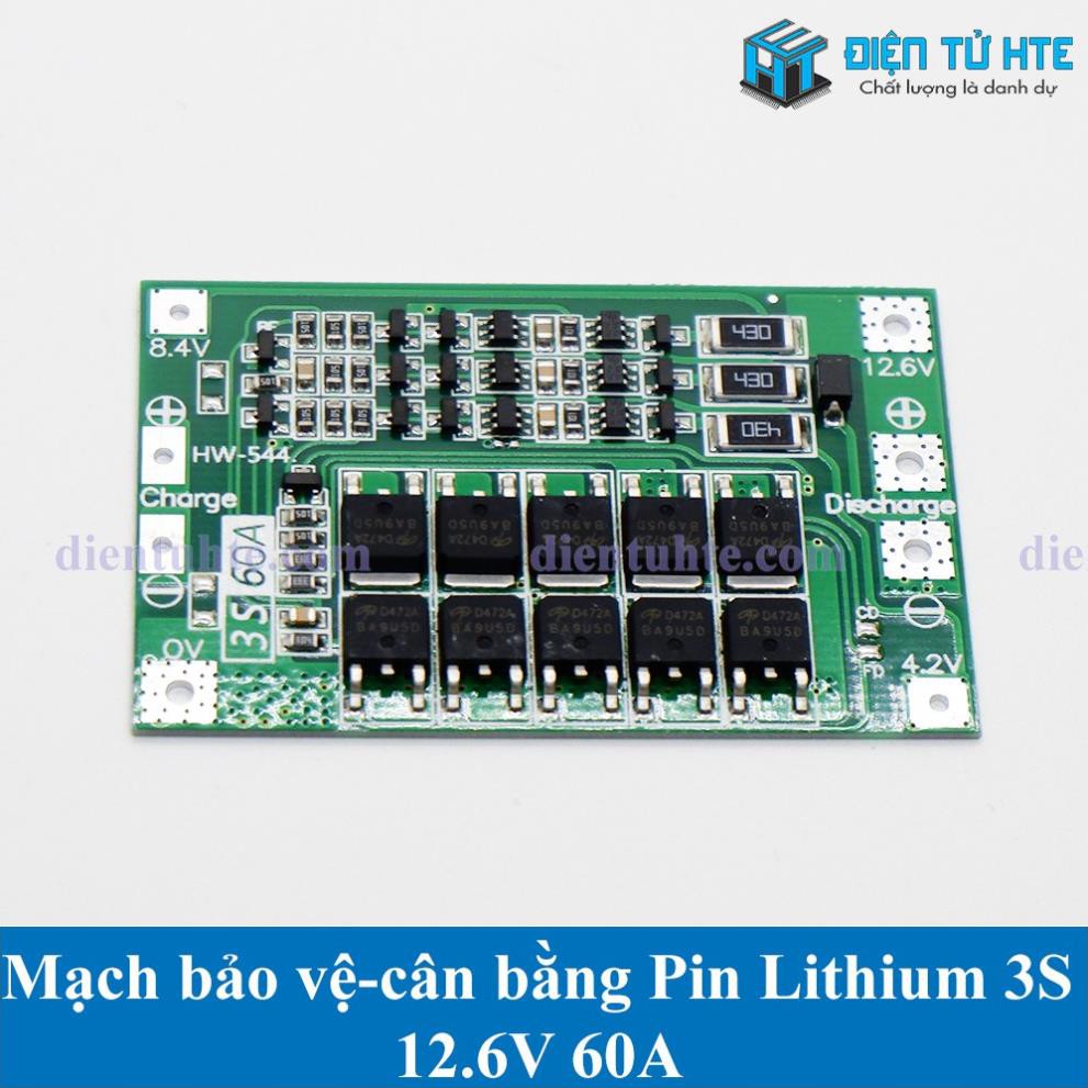 Mạch bảo vệ - cân bằng Pin Lithium 3S 11.1V 12.6V dòng tải 60A [HTE Quy Nhơn CN2]
