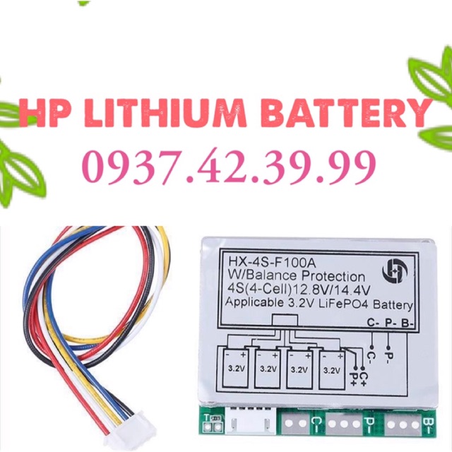 Mạch Sạc Và Bảo Vệ Pin 12.8V 4S 100A được sử dụng chế pack pin 4s từ các pin Pin lithium sắt phosphate (lithium iron phosphate – LiFePO4) có điện thế 3.2V-3.6V.